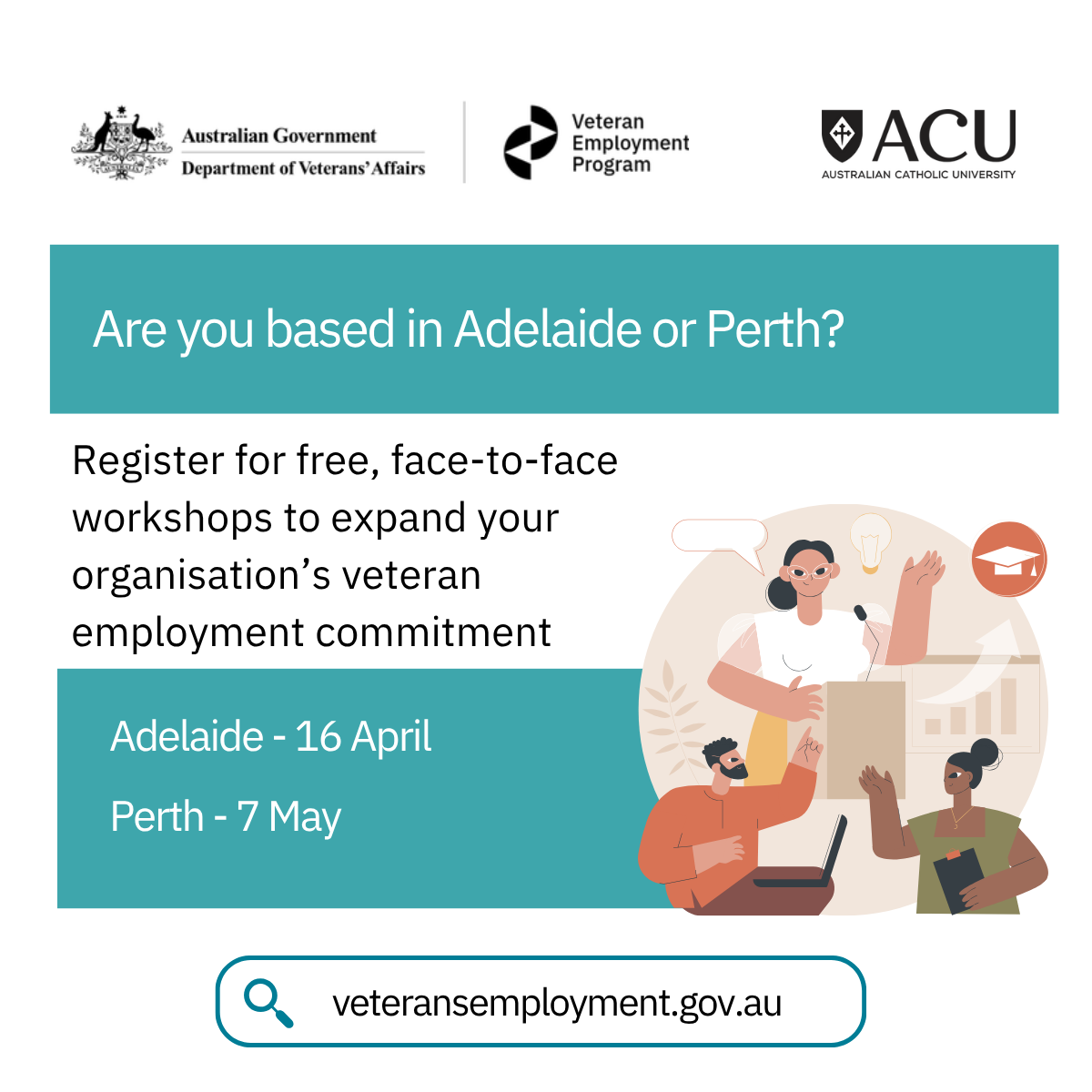 You are invited to register for a face-to-face workshop titled Expanding your Veteran Employment Commitment, being delivered by the Australian Catholic University for the Veteran Employment Program.
